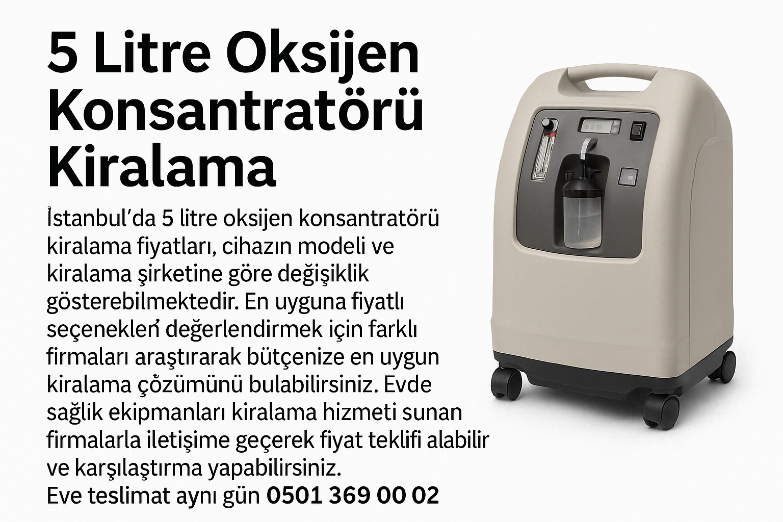 10 litre oksijen konsantratörü kiralama maliyeti ve teslimat süresi
